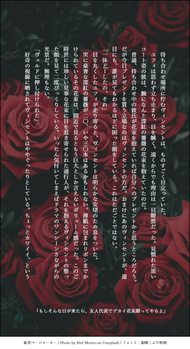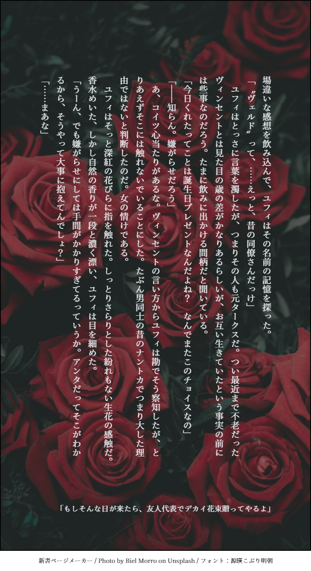 DC後でくっついてるヴィンユフィ前提、ヴィンセントの誕生日の没ネタです。薔薇の花束抱えてるヴィンセントが見たかっただけともいいます。
