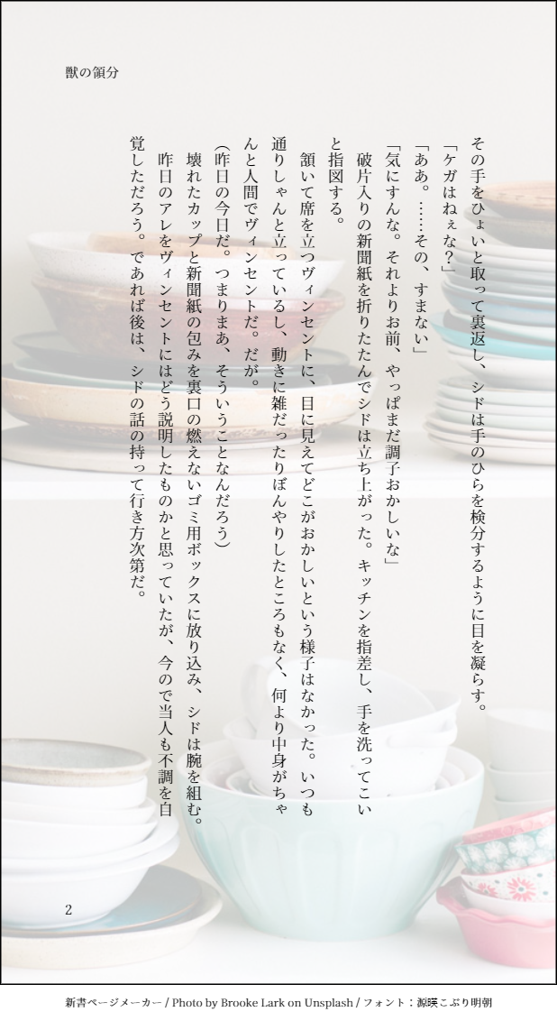 『獣の領分』でヴィンセントが起きたあとの一幕です。マグカップ壊して呆然とするヴィンセントを私が見たかっただけ。